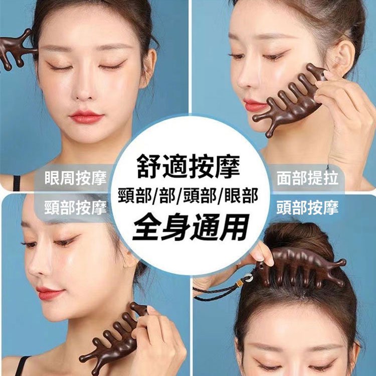 7分鐘前天然檀木美容經絡按摩梳 ◀頭臉按摩◀疏通經絡◀刮痧排毒 按摩穴位促進排毒,面部提拉緊緻 - 【緩解頭痛,按出健康】5入組HK$346