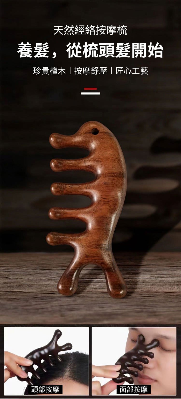 2分鐘前天然檀木美容經絡按摩梳 ◀頭臉按摩◀疏通經絡◀刮痧排毒 按摩穴位促進排毒,面部提拉緊緻 - 【促進血液循環】1入組HK$256