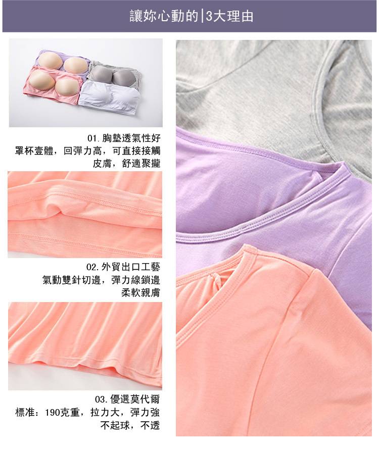 25分鐘前【廠家直銷 買一送一】夏季爆款莫代爾帶胸墊可外穿家居短袖,一體式無鋼圈設計,方便舒適,告別鋼圈束縛,柔軟莫代爾面料,不舒服包退!限時售價!買到賺到 - 【買一送三】任選4件 均價299