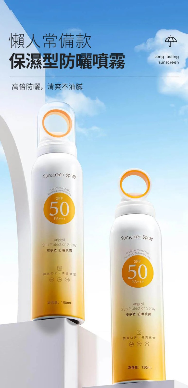 5分鐘前安歌依光圈防曬噴霧,細密噴頭設計 噴頭360°可旋轉自然膚惑,隔離防曬一瓶搞定 - 僅此一天「安歌依光圈防曬噴霧」8入72%用戶的選擇!NT$1598【限時免運】