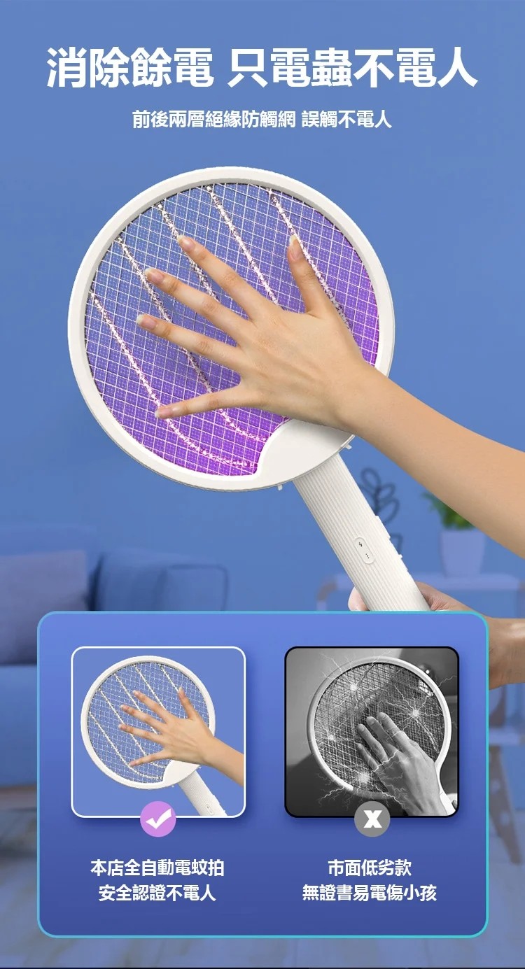 7分鐘前熱賣 四合一多功能電蚊滅蚊拍,立式/壁挂/手持式/可摺叠,雙效自動滅蚊! - 【限時下殺】1入組-NT$990